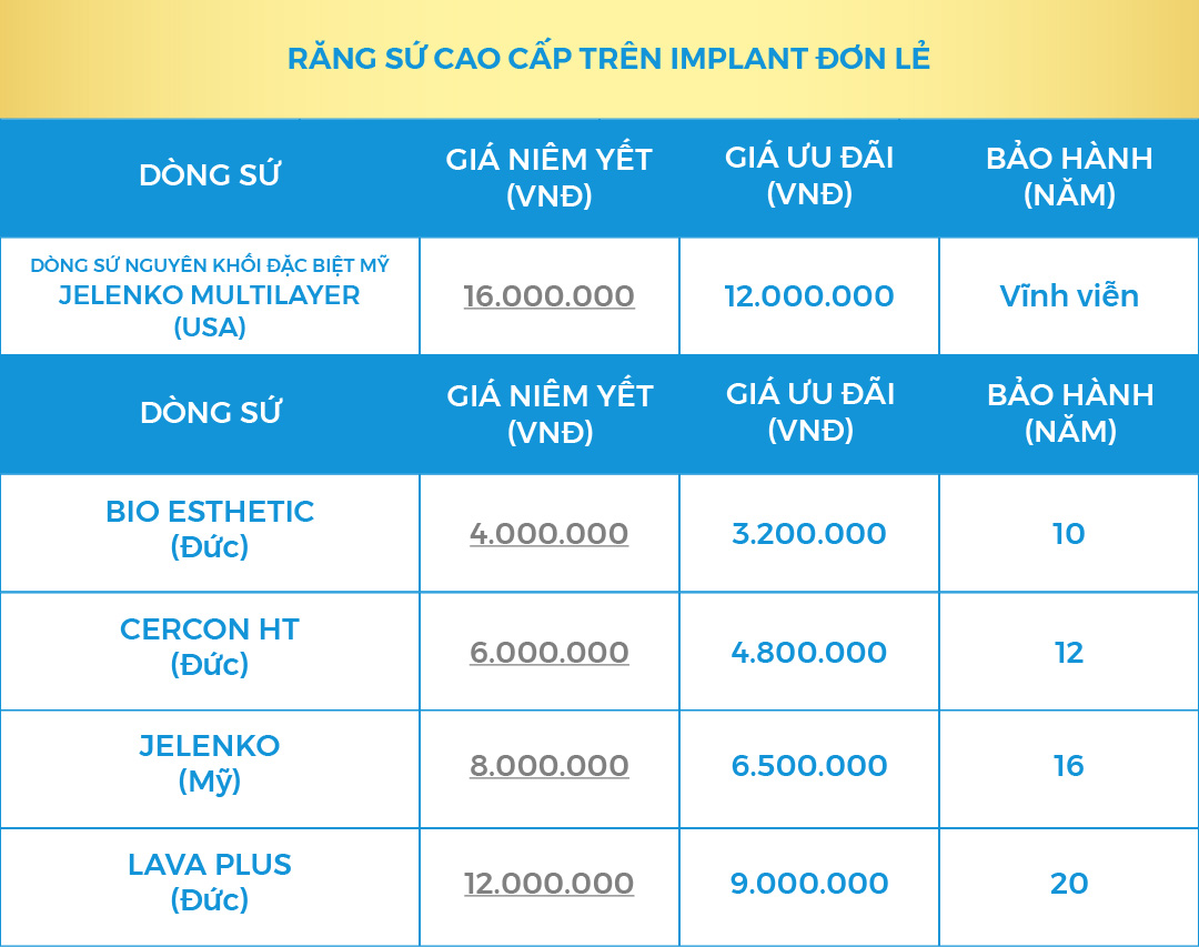 2.2. Giá răng sứ cao cấp trên trụ Implant đơn
