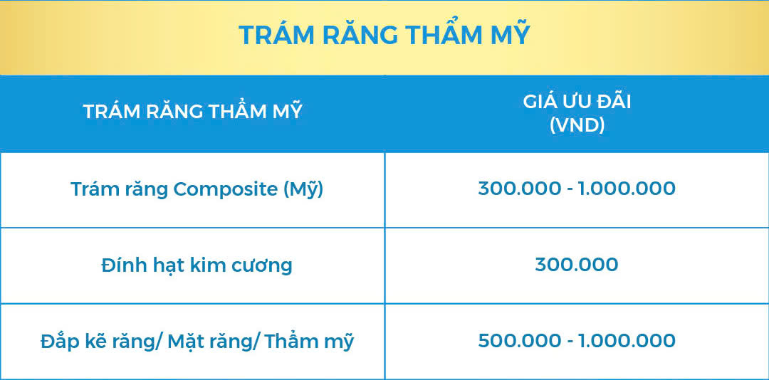 Giá trám răng bao nhiêu tiền hiện nay trên thị trường không có sự đồng nhất và tùy thuộc vào rất nhiều yếu tố khác nhau. Và bảng giá trám răng thẩm mỹ thường được tính cho 1 răng, chi phí trám răng cụ thể là: