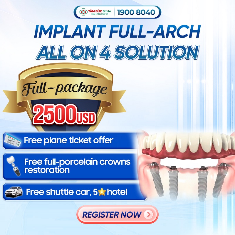 Doctors at Tam Duc Smile have a lot of experience in implanting full-mouth All on 4 and All on 6 teeth. Many customers who have returned to Vietnam for dental services have trusted Tam Duc Smile to implant full-mouth teeth.