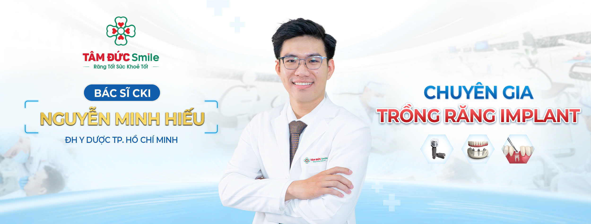 Bác sĩ CKI - Nguyễn Minh Hiếu tốt nghiệp đại học chính quy tại Trường Đại Học Y Dược TPHCM. Với nền tảng kiến thức chuyên môn cao và kỹ năng khéo léo, bác sĩ CKI - Nguyễn Minh Hiếu luôn được bệnh nhân tin tưởng, giao phó trọng trách chăm sóc sức khỏe răng miệng. Tại Hệ thống Nha khoa Tâm Đức Smile, bác sĩ CKI - Nguyễn Minh Hiếu đảm nhận vai trò Chuyên gia Trồng răng Implant, đã thực hiện thành công hàng trăm ca cấy ghép Implant, phẫu thuật tăng thể tích xương, kỹ thuật trồng răng khó Implant All on 4 & Implant All on 6,...